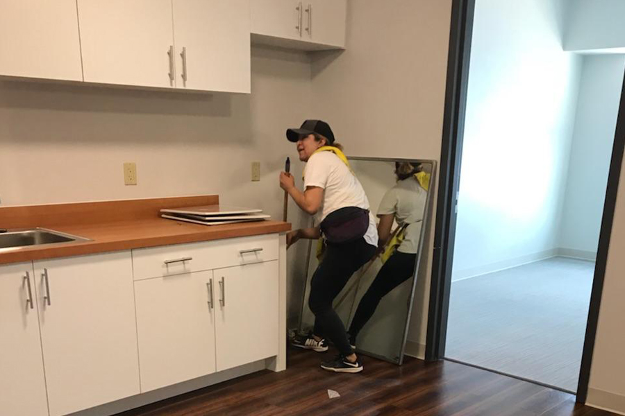 A 150,000 square foot building with 100 residential units.